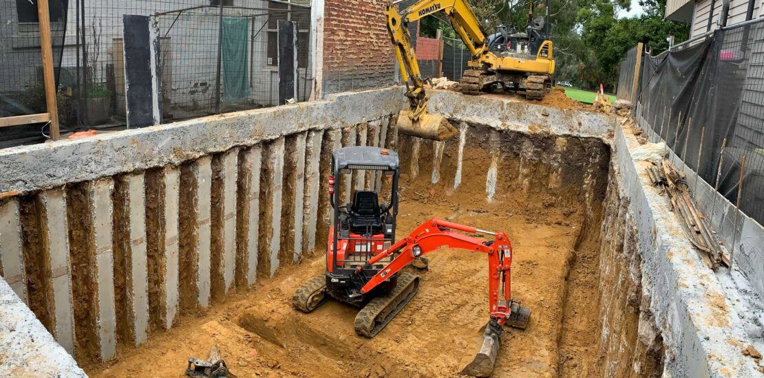 Jaws earthworX is specialized in excavation of basements. We have the experience and recources to work within difficult sites with tight access, bad soil conditions and high water table.